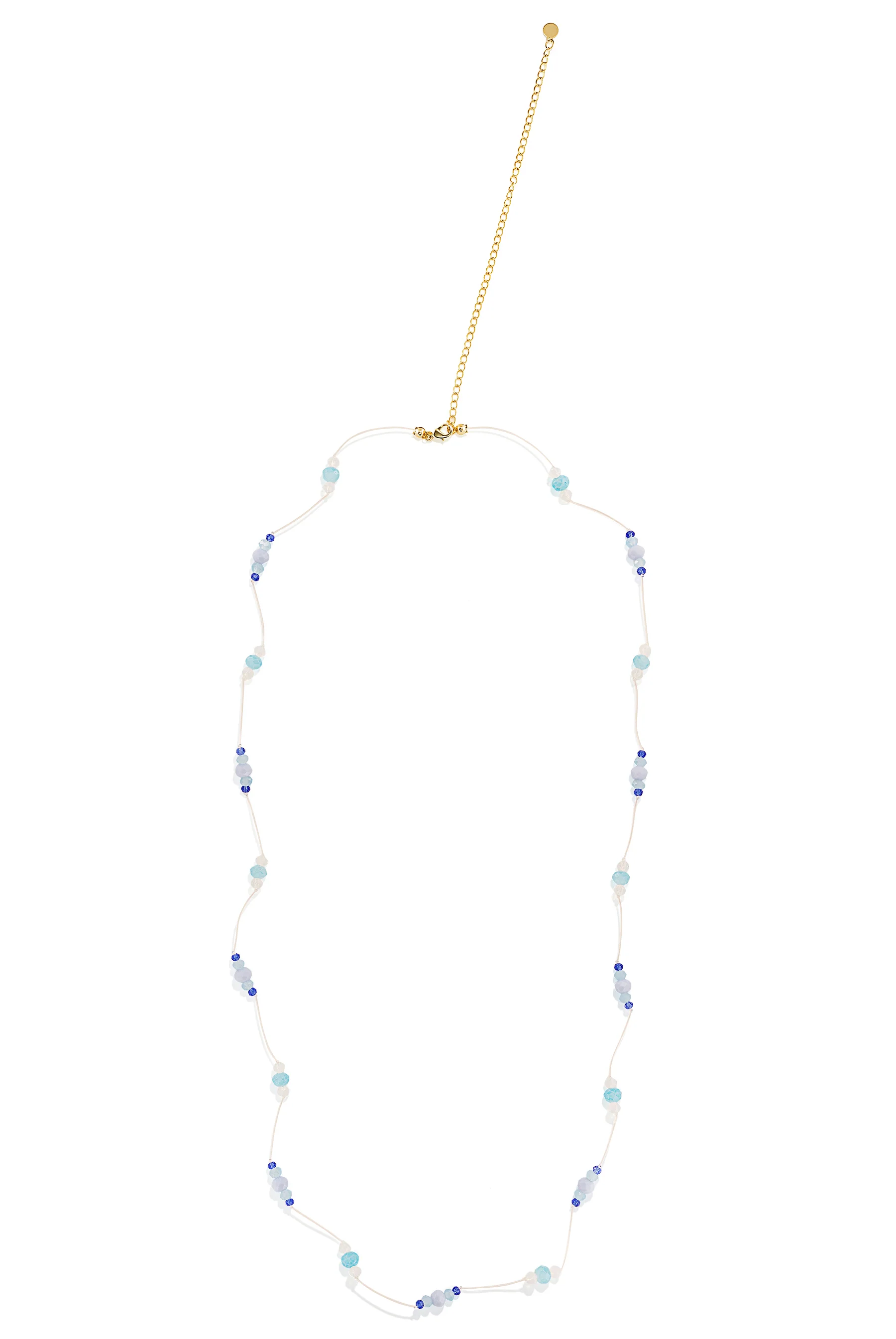 - Design: Clear body chain with moonstone, blue and dark blue crystal beads
