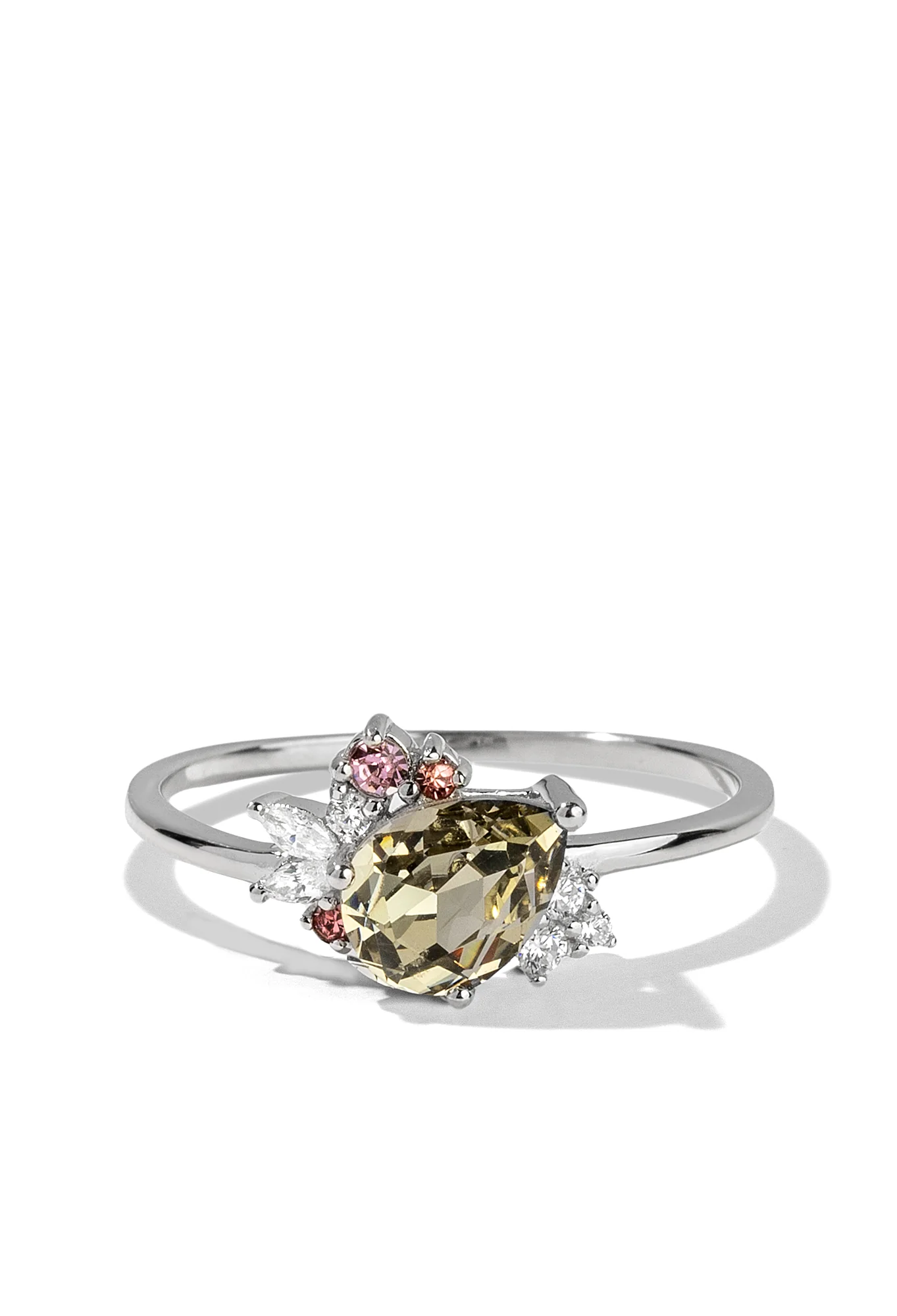 - Design: Olive grey pear cut crystal with pink and white accompanying crystals